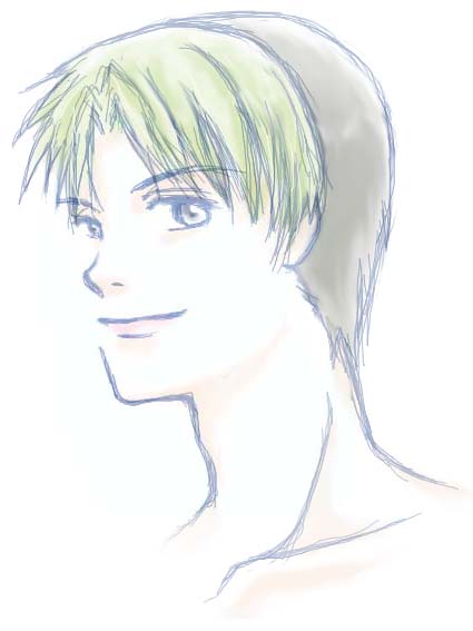 | 8月某日。アオバさんちの日記に、目でおいらを射殺そうとしている進藤を発見☆ 『うっっっ!やっ・・・やられた―っ!!(胸をかきむしりバタリ☆)』 そして意識を取り戻し起き上がった瞬間にはアオバさんに「この進藤下さい」メールをだかだか打っておりました(笑) 「お忙しい時期にメールしてしまって申し訳なしーーー」 とは重々承知してはおりましたが、何せ日記です。 ドンドコドコドコどんぶらこ♪とログは容赦なく過去へと流れて行きます(涙) そんな訳でいきなりな特攻メールを送ってしまいまして、その節は大変失礼致しました。 そしてその上 『このままでは・・・と少し描き直しました。この進藤はとりとんさま専用ですので』 というおもわず涙にかき暮れてしまうメールと共にこの進藤がうちにやってきてくれました。 『弄り過ぎるとアキラさん来ますから気をつけてください』 と言う注意書きまでも添えて・・・・(涙) 確かに飛んで来そうです。あのアキラさんならば! 目力のあるイラスト、大好きです。 小説はサクサク書かれるわ絵までさっくりと描かれるアオバさん、羨ましい限りでございます。 アオバさん、ありがとうございました。 2007年9月1日 アキヒカサイト『WIDE OPEN SPACE 』アオバアキラ様より |