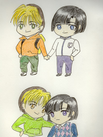 | この素敵イラストは良い子のヒカアキ仲間、ひろえっちさんから頂きました(強奪したとも言う ひろえっちさんは当サイトのゲスト様なんですが、とある方面から「どうやら彼女は絵も描くらしい」との タレコミ情報(画像付き)がありまして(笑) 「これはもうゼヒうちのオエビにアップしていただかねば!」 とそれから熱烈ラブコールを送らせていただき、P−BBSの方にUPさせていただきました。 そして後日、お会いする機会がありその時見せていただいたひろえっちさんのスケブをその場で(しかも道端だった!) 強奪・・・じゃなくってお借りしましてな。 その節は大変失礼致しました(笑) 繊細な線。 そして淡い色使い。 アキラさんの髪のツヤなど見事に塗られていますね。 ラインもしっかりされてて、タレコミ画像を拝見した瞬間 「これは絵を描き慣れてらしゃるな!」 と踏んだので、オエビに投降・・・や!ちがった投稿して下さいぃぃ〜〜。 とお願いしたのでした。きっと他にも(絵の在庫が)あるに違いない・・・・という下心満々な気持ちで! よかったです、お願いして。 絵には人柄が出るんでしょうか?アキラさんの雰囲気がとてもご本人に似ているんですよ。 (ええ・・・・しゃべらなければ、のハナシですが:笑) そしてチビキャラちゃん。 自分はチビキャラが描けない人なので、尊敬です。 さて、もう一枚素敵イラストがあります。 スクロールしてイキナリはまずいかも、と思い別ページにジャンプするようにしてあります(笑) →☆ いかがでしたでしょうか? アキラさんへの愛がてんこ盛りでございましょう? ヒカアキ界の中で多分オエビツールを使いこなす方はそういらっしゃらないかと思います。 けれど、「紙になら描ける」または「そういや、高校時代好きだったマンガの絵描いたりしたっけ?」 「実はこっそりとチラシの裏とかにアキラさんの絵を何枚も描いた事がある」(アキラかよっ?!:笑) なんて方は案外多いのでは? オエビは「通常投稿」で画像UPも出来ます。 ぜひ、碁自宅に埋もれているイラストがありましたら投稿なさってみてはいかがでしょうか? さて、ひろえっちさま。 その節は道端で人様のスケブ強奪☆などということをやらかしまして大変失礼いたしました。 オフでお会いしてとても楽しいお話も一杯聞けて(本当に!)嬉しいです。 またイベントでお会いしましたらば遊んでやって下さいませ。 ありがとうございました。 2006年6月23日 |