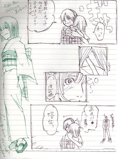 | 出ましたーー!龍之助くんの「ヒカちゅう元気でちゅう」(爆笑) この後ろ姿もキュートなヒカルは(笑)オガアキサイトconjured Two様からいただきましたー。 これを頂く前に龍之助くん発行のコピー誌を送っていただきまして・・・・そしてその時同封されていた 一冊のノートには素敵イラスト&マンガが満載でした! もうキレイなカラーイラストあり〜の爆笑マンガがあり〜のでもうお腹抱えて笑ってしまいましたよー。 その中に出ていたんです、ええ。この「ヒカちゅう」がっっ(爆笑) ヒトカゲの格好をした「アキカゲ」も出演しています!(佐為はサトイという名で!)そして敵はモチロン「緒方さん」 そして龍之助くんから許可を頂きましたので、そのノートの一部を碁紹介したいと思います。 (ありがとうございます、龍之助くん♪) ヒカアキ風呂覗き隊:隊長、龍之助くん、素敵な暑中お見舞いとノートをありがとうございました。 これからもよろしくお願い致します。 いただきものノートへ碁ーー☆ ↓ ↓ 平成17年8月24日 ヒカアキ風呂覗き隊:隊員1号 とりとんぼうず |