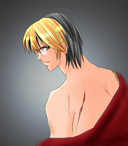 衣をはだけさせた近衛の身体には、無数の傷が刻み込まれており それは戦がどれほど激しかったのかを如実に物語っていた。 賀茂はしばし声も出なかった。 『賀茂?どした?』 ![]() 「僕が傍にいればここまでひどくはさせなかったのに…」 賀茂の頬に一筋の涙が流れた。 『賀茂・・・・・でもこうやって無事オマエの元に帰ってこれたんだし・・・・な』 「もう・・・・・・もうどこへも行かないでくれ」 『賀茂・・・・』 「ずっとボクの傍にっ・・・・」 『賀茂っっ!』 |