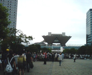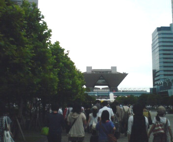 | そして改札を出ると相変わらず待ち合わせ?の人の波。そして・・・ 「あれ?一般参加者、右?」 多分、左側行ってあの海沿いの駐車場に並ばされるんだろうなあ、と覚悟していたのですが違って右側 ビッグサイト入り口方面へと誘導されました。 少し歩いて 「!」 すげ! もう開場して1時間近く経つのにそれでもこれかよ。 「もっと前に詰めて下さーい。少しでも多くの方々を入れてあげたいので、少しの隙間も作らないでー!」 「その一歩が新刊ゲットへの道に繋がりま〜す」 ビッグサイトの建物を正面に見る形で並びました。 もうね、朝のラッシュ並みにぎゅうぎゅうだよ。 並んでる間、何やってるかと言うと音楽聴きながら携帯見る・・・・・位ですかねえ。 海沿いの駐車場ならそこに座れるので(下コンクリ)ラクチンなんだけどなあ・・・・。 あ、ナナメ後ろは外人さんだ。(女性二人連れ) 両隣は若いお嬢さん方。(初日なので女性多し。野郎ちゃんは三日目です) 楽しそうだなあ・・・・・。そうだよね、もし自分がこの年代の頃来てたら嬉しくて嬉しくて仕方が無かったと思う。 自分、この道に転んだのは40になってからですから(笑)あの年代の頃からこっちの道にハマってたら一体どうなってたんだろうかと思うとそれはそれでふと空恐ろしくなりました。 ひたすら立ち続けて時折訪れるホットフラッシュ。 だぁぁぁ――っっと一斉に汗が噴き出てきます。 パタパタと扇を高速で扇ぎますが流れ出る汗は止められないぃ〜。 足を伝って汗がだらだら流れて行きます。 その間中「これはおもら○じゃないのよぅ、ただの汗なの!」と心の中で周りに言い訳してました。 そんなこんなで1時間ちょっと経った頃。やっと列が動く気配。 「今日が炎天下じゃなくって本当〜に良かった!」 と心から思いました。 そして列は一気に建物に向かって動きます。 んでまた正面階段のとこは、エスカレーターを使ってノンキに上がる・・・・と。 「さて、カタログ・カタログ・・・・・っと・・・って、ああ?!何だ?あの列はぁ?」 入口手前のトコに設けられたカタログ販売スペ。 そしてそこへのもの凄い列。 ここまで散々並ばされてまた並ぶ気には到底なれずそのまま入口に向かいました。 あれ、下で並んでる時に売ってくれればなあ・・・・。ムリか。 駐車場で待機の時は駐車場の入り口で売ってましたから、座って待ってる間それを読んだり座布団代わりにソレをお尻の下に敷いたりしてたんですけどね。 入口脇で、外人さん(ちょっとイケメン風)がマーカー片手に必死にサークルチェックしてたのが微笑ましかったです。 真剣な表情だったよ。(字、読めるのか?) さて・・・。 今回も東館。 いつもの流れですいすいと入館。 相変わらずの凄い人波。 上から下を覗くとやはり呟いてしまう。 「人がゴミのようだ」と。 まずはSEEDスペへ(苦笑) くるめさんちが今日はコピー本なのです。 そしてくるめさんに碁挨拶。 「あっ♪とりとんさん。アレ、やりましたよーーー!」 『アレ?』 「ええ、あれ(笑)あなたの脳年齢チェック!」(別サイトへ飛びます) 『ああーーーやって下さったんですか?っつか日記見て下さってありがとうございます』 「えっへへ―!何と10代が出ましたよ、何度か」 『す・・・すごい!自分、何度挑戦しても20代前半がいいトコでした(涙)』 なんてお話をしてからしばしSEEDスペースを周りました。 途中、「とりとんさん♪」と声を掛けられ振り返ると水川さん。 『をを!お久しぶりです―。入場してから碁に行かずにガンダムに来ちゃってますよ(苦笑)』 「ふふふ・・・・ワタシもですよ。」 そしてひとしきりSEEDを回ってから碁スペースへと急ぎました。 あ〜今回は碁スペース、長いんだ―。 まずはひろろさんちに碁挨拶してからアキヒカさん等物色しながらヒカアキスペースへ。 をを、皆さんいらっしゃる。 碁挨拶しつつお買いもの、お買いもの♪ そして立ち話。 あさぎさんと梨華さんと3〜40分は軽く話し込んでたんじゃないかと。 その間ずっと後ろでのりさん、お待たせしてしまってた・・・・ですよね? のりさんその節はすみませんでした―(今頃言っても) それからきなみさんのとこで、しばし街ゲーの話に花が咲きました。 前のイベントの時きなみさん、きゅうさんから「ヒカ碁ゲーム」のお話をあれこれと聞いて 「やってみようかな?」 と思い、途中から参加してます。 そしてきゅうさんからゲームで自分の知らないイベントや知らずにやってた事とかを説明受けて驚きの連続でした。 「え?とりとんさん、まさかこれ知らないで続けてたんですか?」 と、きゅうさん。心底驚いたって顔してます(笑) 『うん、そんなのあるなんて知らなかった!今知って驚いた!』 「ちょっと待ってくださいね、その画面(ゲーム画面)出しますから!」 とおもむろに携帯でその画面をサッサっと出しレクチャーを受けました。 目からウロコな話ばっかだよ。 ・・・・っつか! その携帯、なに?何でそんなにスクロール速い