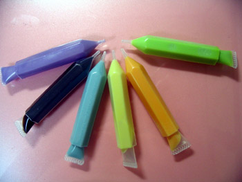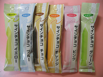 こんな感じ。 生クリームの絞り袋を作ると思っていただければよろしいかと・・・・。 (先は細くして) 右手には小さなホッカイロを持ち、それに重ねて絞り袋を握って描きました。 確かにこれはとても綺麗な線が出る! しかし!気がついたら上からチョコがはみ出てて!(ばくしょう) チョコが足りなくなっちゃったんだよ。 (線画用のブラックは1本しか頼まなかった) 仕方なく、爪楊枝を用意。 はみ出したチョコにちょんちょんしながら描いた!(涙) しかもどんどんチョコは固まって行くし。 |