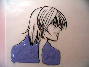 ほとんど爪楊枝で描いたようなもんじゃないか?(笑) めっさ時間が掛った。 自分の手際の悪さに眩暈がしてきた。 レシピサイトでも書かれていたが、チョコペンは太いので細かい線画には向かないとの事を 改めて実感。 線画が出来たら冷蔵庫へ。冷やし固める。 裏側からカラーチョコを塗る。 塗るというよりも「乗せる」という感覚で! 高校時代にやったセル画塗りを思い出し、感無量。 そしてまた冷蔵庫へ。 これの繰り返し。 |