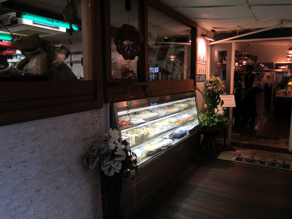 階段降りて右へ行くとテラス席。突き当たって左奥が室内レストラン。 もちろん、我々はテラス席へ・・・・。(以下、スタッフの許可得ての撮影です)