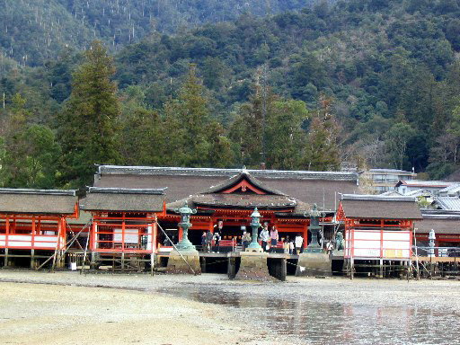 | 厳島神社マメ知識 (593年)推古天皇即位元年 社殿の創建 (811年)弘仁2年 初めて日本の歴史に厳島神社が記録される。 (1168年)仁安3年 平清盛によって社殿が造営される。 (1207年)承元元年 火災にあい、修復が行われる。 (1223年)貞応2年 火災にあい、修復が行われる。 寝殿造りの建築様式を巧みに取り入れ平安の風格をよく再現しており、 特徴ある優美な曲線が随所に見られます。 |